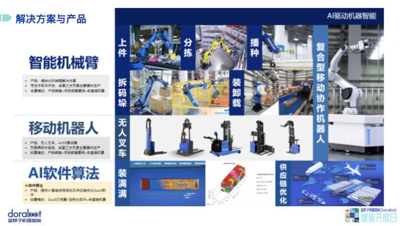 上件機器人DoraInductor、分揀機器人DoraSorter、包裝機器人DoraPacker、復合型移動協作機器人DoraMOMA等智能機器人齊上陣,讓人眼前一亮。值得一提的是,藍胖子裝載機器人DoraLoader也在媒體開放日上首度曝光,將在不久的未來落地實際應用。