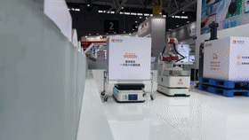 展會(huì)現(xiàn)場(chǎng),所有的AMR機(jī)器人都由同一套調(diào)度管理系統(tǒng)CLOUDIA的指揮,在有限的展臺(tái)空間內(nèi)同場(chǎng)運(yùn)行,相互協(xié)調(diào),協(xié)同作業(yè),實(shí)現(xiàn)狹窄空間內(nèi)的異構(gòu)機(jī)器人集群混場(chǎng)調(diào)度應(yīng)用。