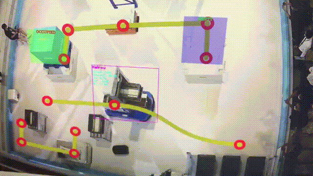 RoboView 可以實現對場景內的所有狀態實時安全監控,包括:外來異物(非作業人員、作業人員進入非安全區域、AMR 脫離預設任務軌跡、非作業 AMR 等)侵入監控、貨物狀態監控、AMR 路線障礙物檢測、其他聯動設備的監控(如大型貨架,升降電梯等)。