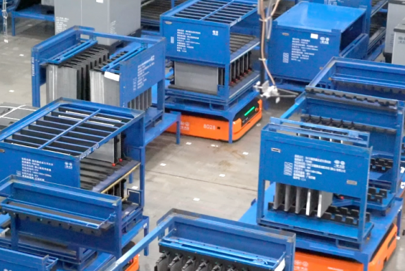 目前已部署潛伏和叉取系列機(jī)器人,共計(jì)近300臺(tái)AMR運(yùn)行在智能工廠中,覆蓋3個(gè)樓層,涉及原材料倉(cāng)儲(chǔ)、車間產(chǎn)線配送、成品倉(cāng)儲(chǔ)。