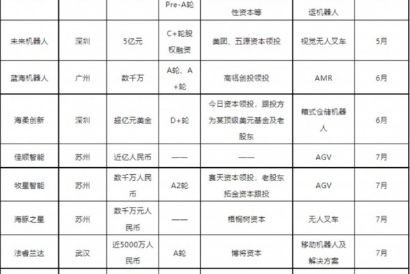 2021年工業AGV/AMR行業融資一覽:29起 累計金額超40億