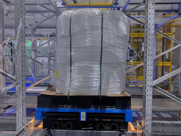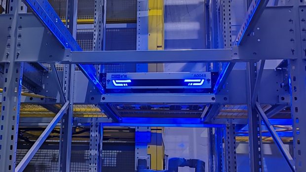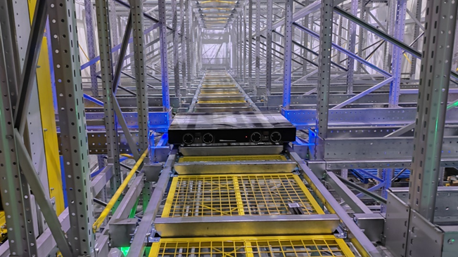 這個倉庫是一個5℃冷藏庫,主要存儲國內某關鍵產業所需材料,要求恒溫恒濕。倉庫高9米,為實現最大空間利用率,托盤四向穿梭車(簡稱“四向車”)方案是最優選擇。其中,曠視在軟件調度算法上的優勢,以及與松下信息很好的配合度,讓松下工廠最終選中了曠視智能托盤四向車系統。