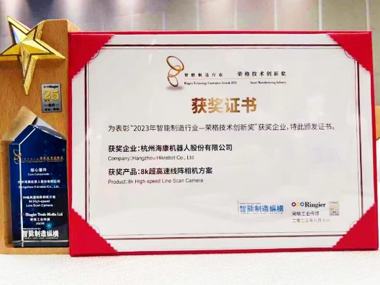 海康機器人8k超高速線陣相機方案榮獲“榮格技術創新獎”
