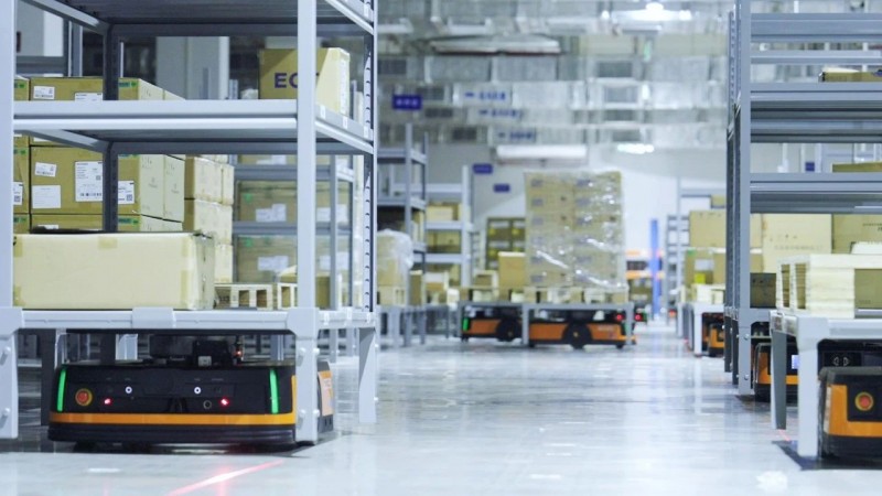 智能工廠集成了PTL分撥墻、多款AMR機器人、提升機等多種硬件設備。海康機器人控制系統RCS-2000對近200臺AMR實現集群調度控制、運輸管制、路徑優化等,確保系統運行高效順暢,各設備作業協同有序。