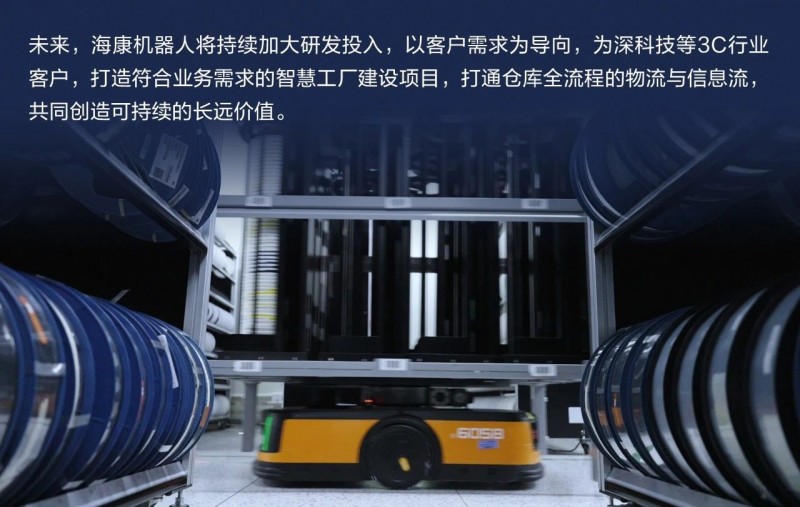 針對手機制造復雜、精細的多工序生產,二期部署CTU料箱機器人解決方案,可適應不同尺寸、不同材質料箱的高密存儲和精準配送,實現倉庫到SMT產線的全流程物料管控,AMR配合提升機,實現SMT加工、點膠、組裝、老化、測試、鍍膜、包裝等典型的手機生產流程的跨樓層全自動搬運。
