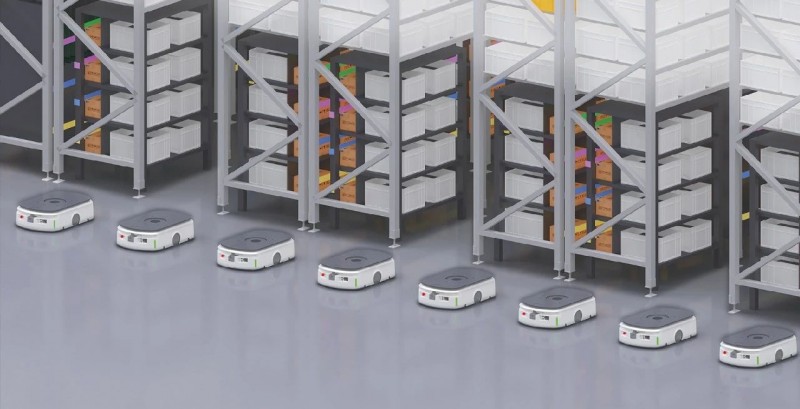 下揀:使用潛伏式AGV+POD料架的形式來實現揀選物料的快速出入庫和預分揀暫存,充分發揮潛伏式AGV快速靈活的搬運特點,實現從高位倉庫到揀選位/出入庫站點的接駁搬運。