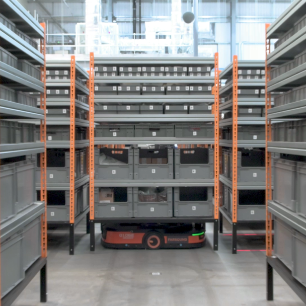 Farsound定制了多種貨架來滿足不同種類零部件的搬運(yùn)需求;同時,海康機(jī)器人LMR可實(shí)現(xiàn)貨架的柔性適配。