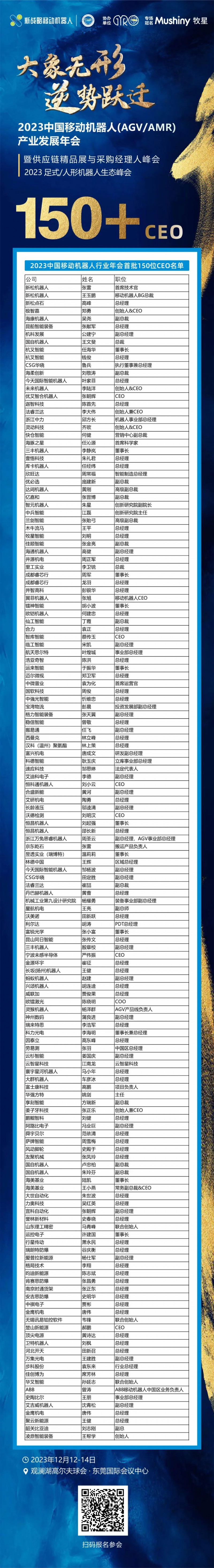 2023中國(guó)移動(dòng)機(jī)器人行業(yè)年會(huì)首批150位CEO參會(huì)名單