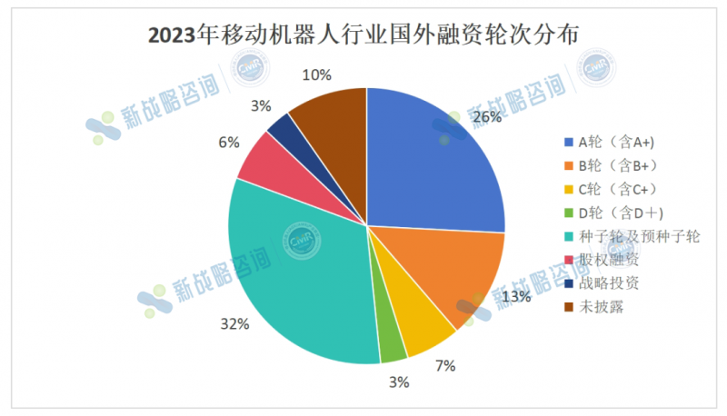 從融資輪次看,融資輪次集中于種子輪、預種子輪以及A輪,資本對于國外移動機器人初創公司較為關注。整體來看,融資進程較慢,進入C輪和D輪融資的數量占比僅為10%,市場處于較為前期階段。
