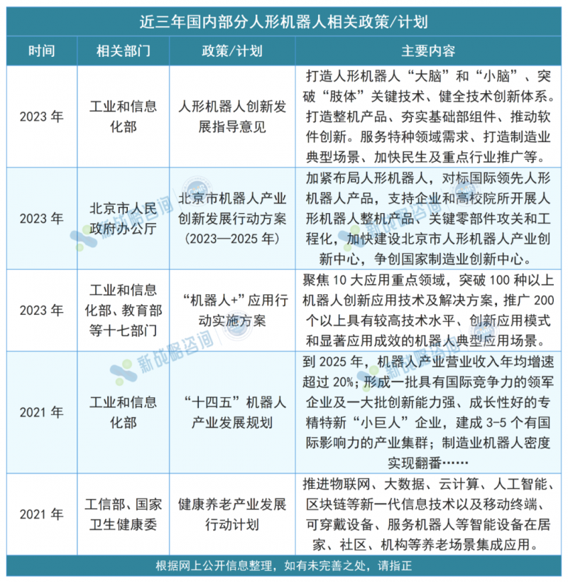 近幾年,中國政府高度重視人形機器人產業的發展,提出了一系列政策和計劃。例如,2023年10月,工信部印發了《人形機器人創新發展指導意見》,并大力支持人工智能、機器人等高新技術的發展。此外,中國政府還大力支持建設人形機器人創新平臺,包括人形機器人研發中心、實驗室等。