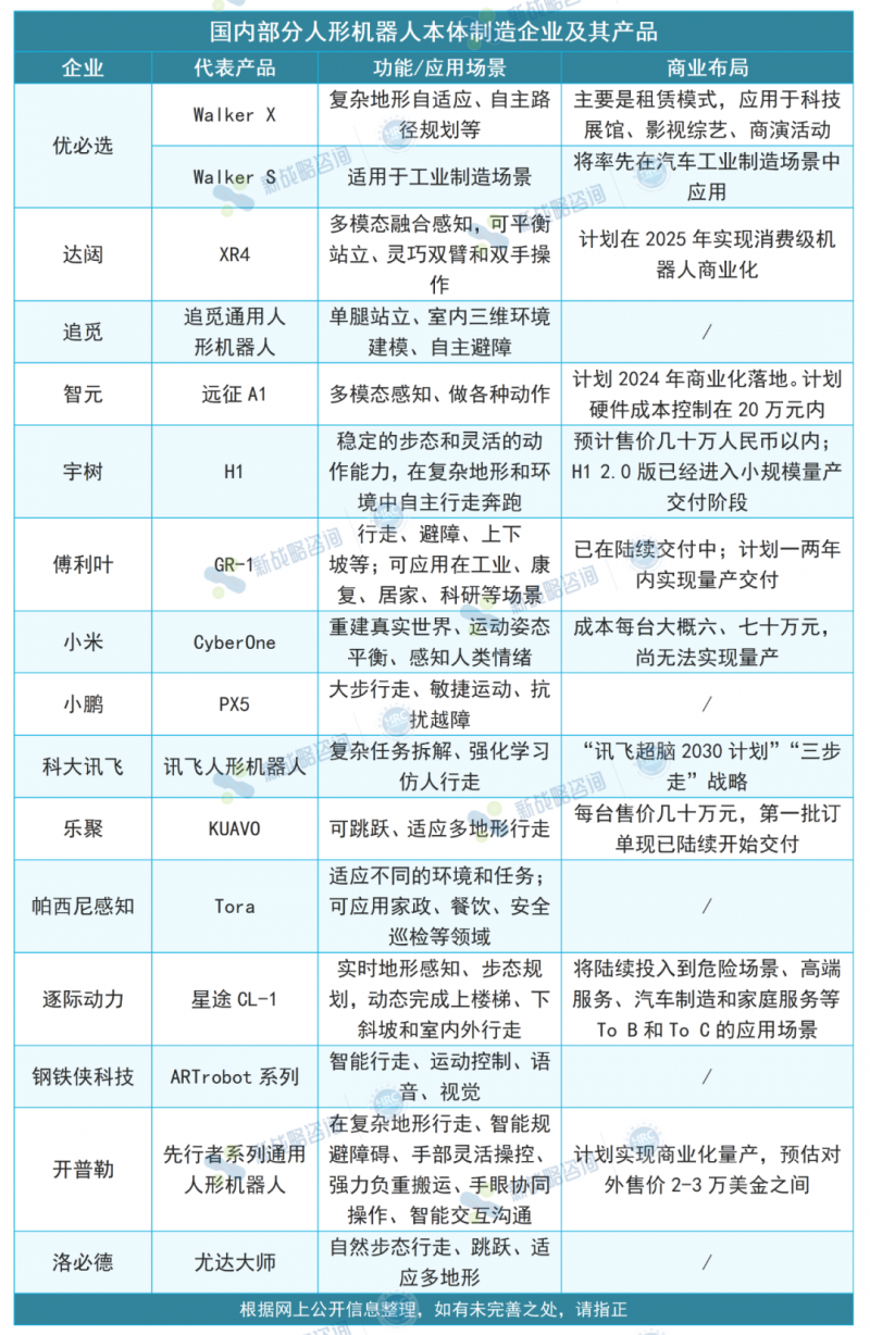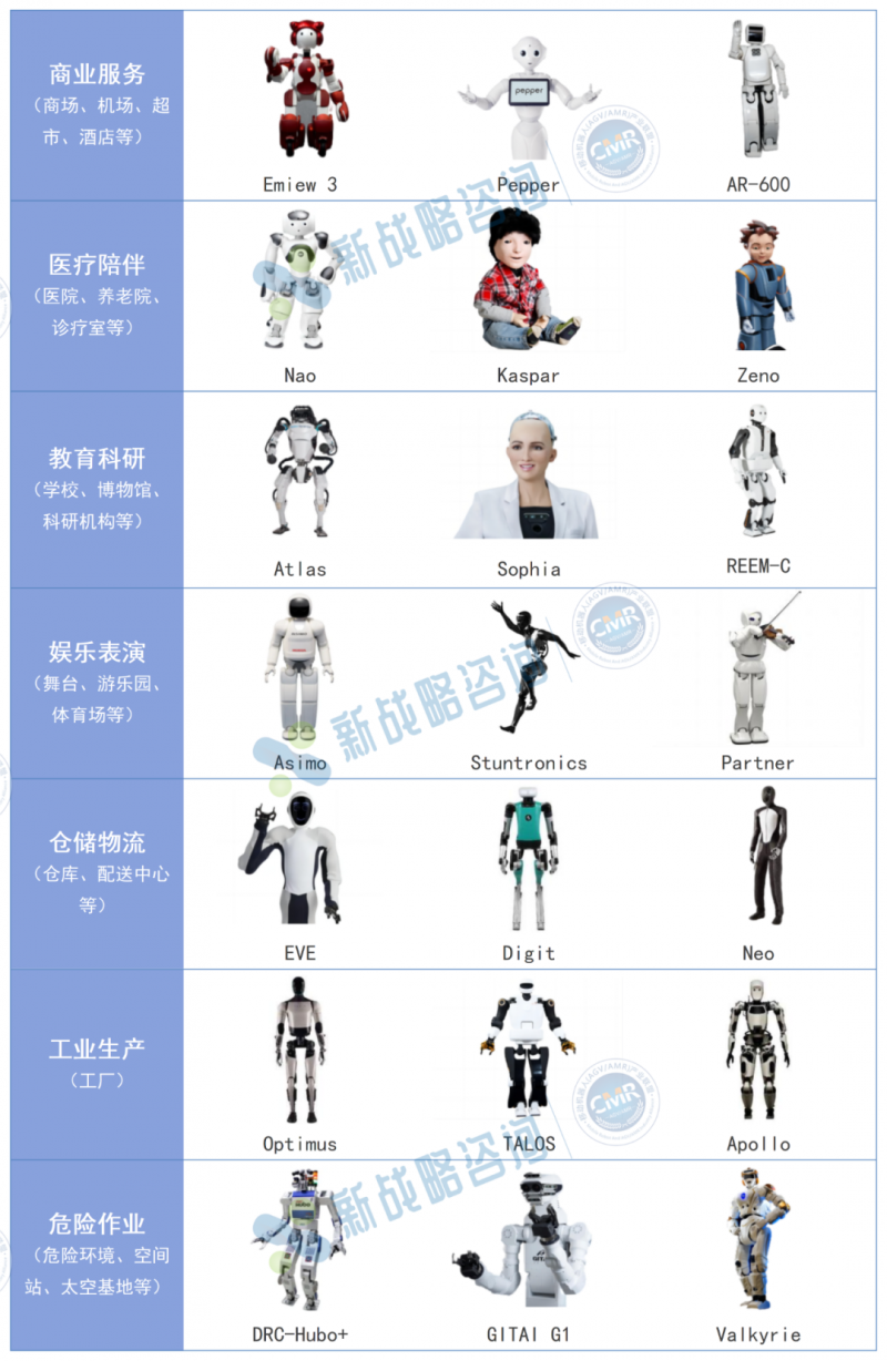 注:圖中多款人形機器人可用于多個應用場景