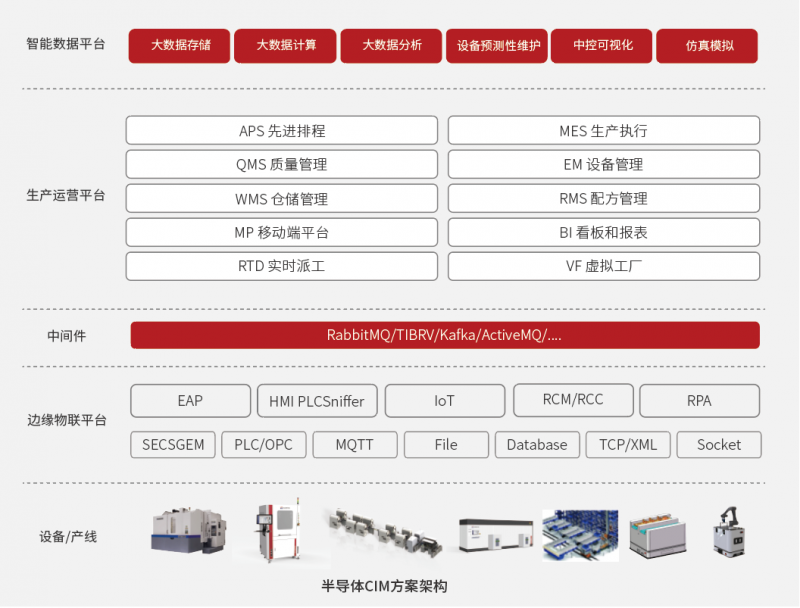 自主可控CIM系統方案,融合了在半導體晶圓和封測領域多年的專家經驗,采用了最新一代的信息系統技術和平臺,可滿足全自動化和半自動化場景需求的半導體數字化工廠解決方案。