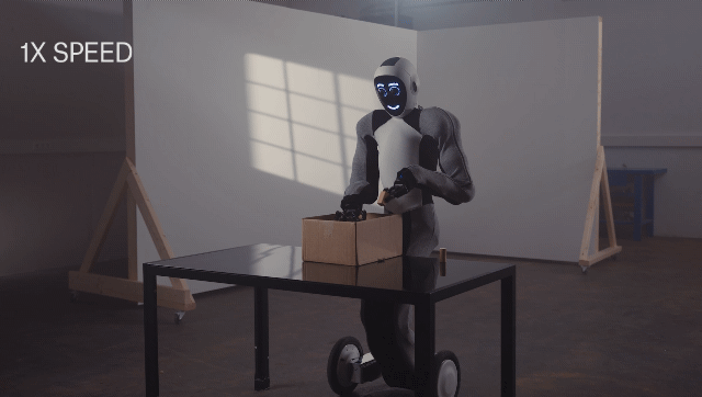 2022 年 10 月,1X的視頻中展示了EVE機(jī)器人第一次完成開門任務(wù)。那時(shí),EVE機(jī)器人的動(dòng)作還稍顯笨拙。