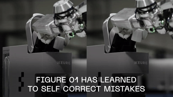 制作過程中,F(xiàn)igure 01 能自主調(diào)整動(dòng)作不準(zhǔn)確的地方(左圖部分),無需任何人為遠(yuǎn)程遙控。