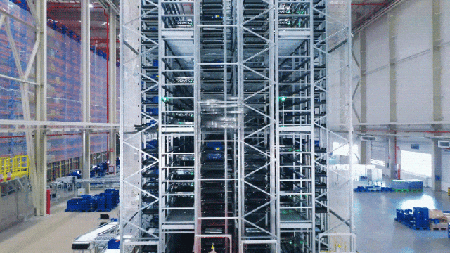 小件箱貨品從多層穿梭車系統出庫后,由GTP貨到人揀選站臺完成訂單揀選。結合可實現訂單排序的多層穿梭車系統和貨找人作業模式,系統的作業效率可高達1,627箱/小時。整個環節中,系統還會在底部自動篩查出不合格料箱,保證業務效率與生產安全。