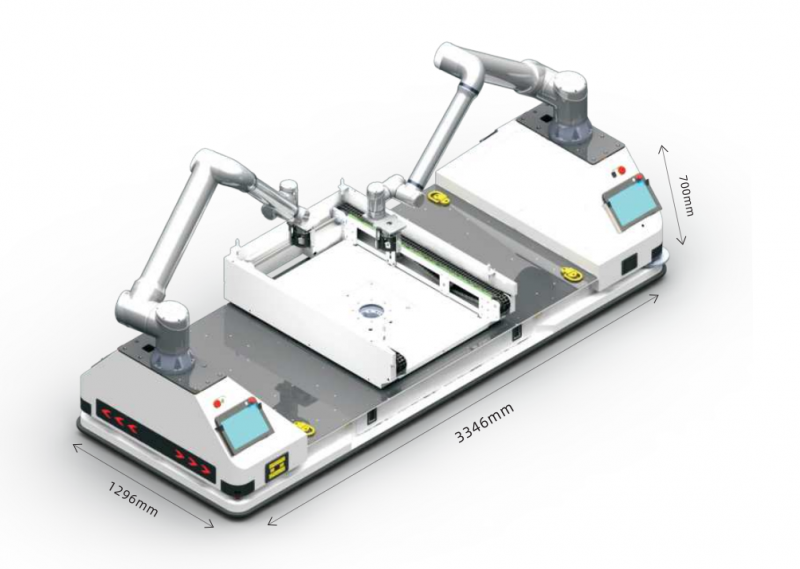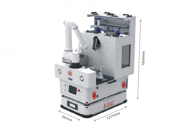 歐鎧復合機器人是基于AGV搭載多軸機械臂組成,結合ERP/MES等信息系統的指令,復合機器人與信息系統結合運作。調度人員通過系統,向復合型機器人下達物料運輸、上下料的指令,車間智能化由此形成。