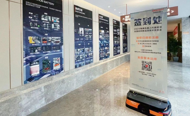昆明站創新性地將機器視覺與AMR相結合,AMR載著機器視覺的易拉寶現場穿梭,為與會者傳遞活動信息,吸引了許多關注。