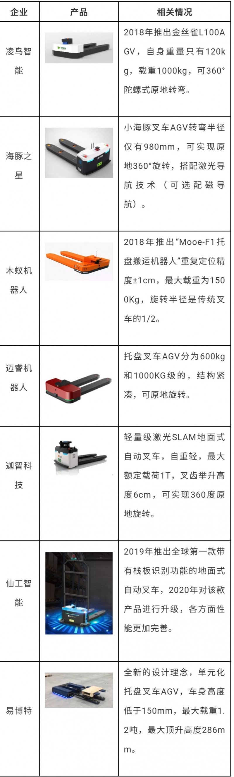 表:國內(nèi)部分緊湊型托盤叉車AGV廠商