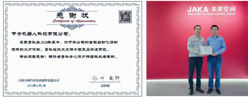 節(jié)卡機器人CEO李明洋(右)代表節(jié)卡機器人接收豐田感謝信