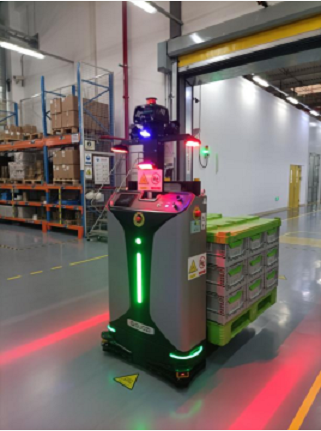 SLIM堆垛機(jī)器人推出后得到了應(yīng)用端的廣泛認(rèn)可。在某世界五百?gòu)?qiáng)企業(yè)的汽車(chē)零部件工廠,客戶現(xiàn)場(chǎng)需要24小時(shí)不停工,原本人工作業(yè)模式需要三個(gè)工人倒班次才能實(shí)現(xiàn),作業(yè)效率低且投入成本逐年增高。該項(xiàng)目現(xiàn)場(chǎng)覆蓋面積約3000㎡,采用國(guó)自的SLIM堆垛機(jī)器人后,實(shí)現(xiàn)了包材庫(kù)、產(chǎn)線、成品庫(kù)之間物料托盤(pán)24小時(shí)不間斷自動(dòng)運(yùn)輸,單車(chē)日均完成訂單數(shù)100個(gè),搬運(yùn)效率提升200%,節(jié)省人力60%;同時(shí)還實(shí)現(xiàn)了運(yùn)輸流程、線邊包材信息、成品庫(kù)信息的數(shù)字化、可視化,有效提升作業(yè)管理水平。