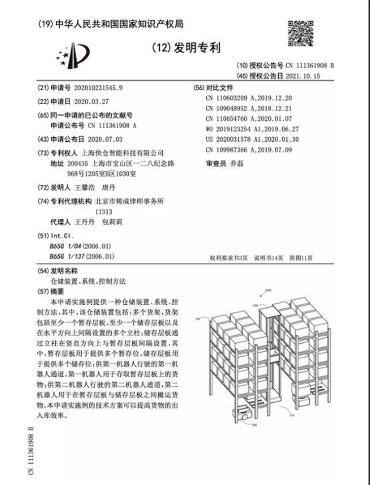 快倉(cāng)Quick Pick方案以其先進(jìn)性和創(chuàng)新性獲得了行業(yè)內(nèi)外的一直認(rèn)可,20211015日快倉(cāng)QuickPick發(fā)明專利獲得正式授權(quán)!