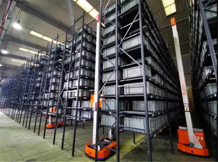 2021年,快倉(cāng)智能與上海虹迪物流科技有限公司聯(lián)合打造了虹迪智慧物流Quick Pick項(xiàng)目,智能倉(cāng)的整體面積逾1000㎡,采用11層高密度AGV貨架,貨位一層改造為一半緩存位一半通道,這樣空載小車可從緩存位下方穿行,帶載小車可從通道穿行。