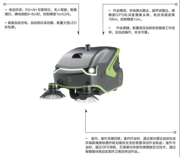 山東魯環機械設備有限公司所發布的5G無人駕駛新能源掃地車,基于5G+無人環衛AI大腦,無人駕駛智能清掃車基于自動駕駛控制器,能實現智能化和無人化作業。當