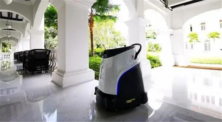 在續航方面,機器人一次充電后續航時間長達8小時,可以根據提前設定好的路線精準運行,自動導航,每小時可覆蓋3000平方米的地面清掃,工作過程中自動識別并且避開障礙物。