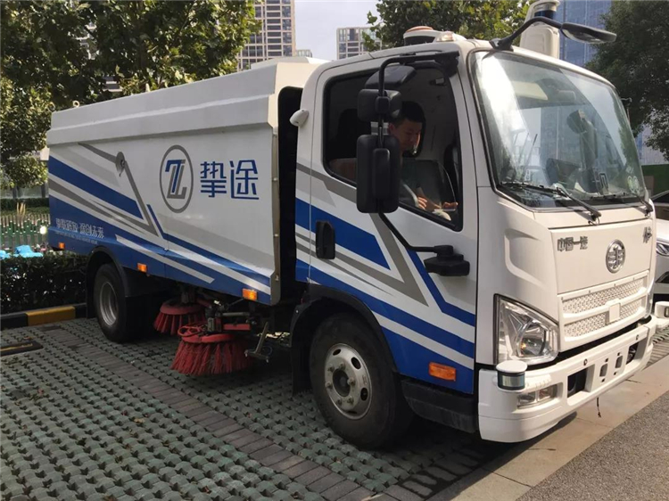 摯途無人駕駛清掃車,基于一汽解放J6F的線控平臺打造,配備毫米波雷達和激光雷達傳感器等車規級智能硬件,通過多層冗余,實現作業區域環境感知和避障行駛,通過自動起步、自動作業及自動停車,實現環衛清掃智能化。