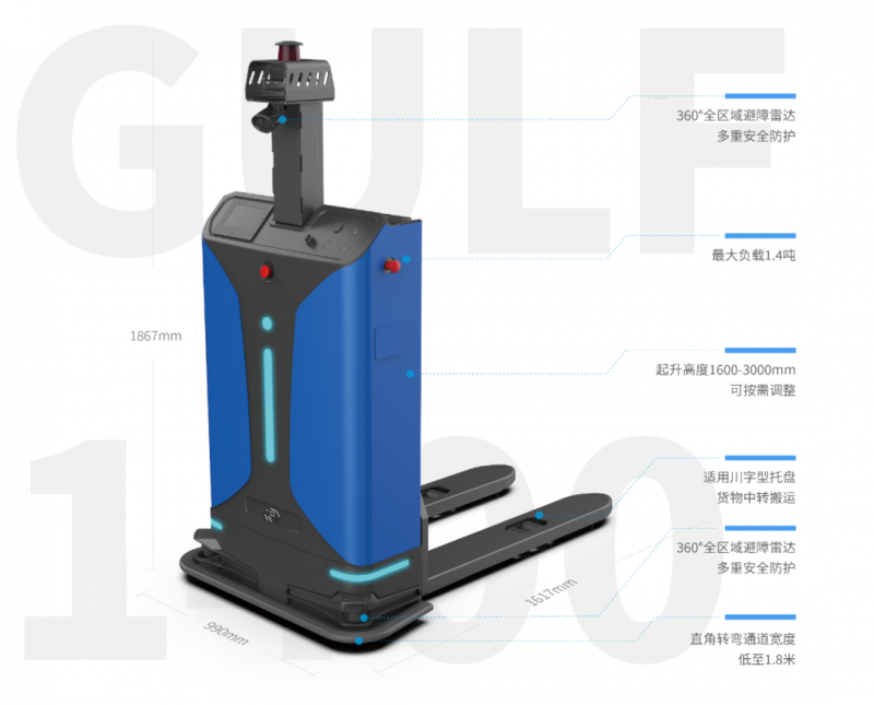 此外,Gulf-1400-CDD無人叉車搭載無線對接模塊,可以對接車間內(nèi)的自動門,達(dá)到自動開關(guān)的效果,實現(xiàn)跨場景高效搬運(yùn)。