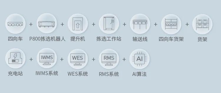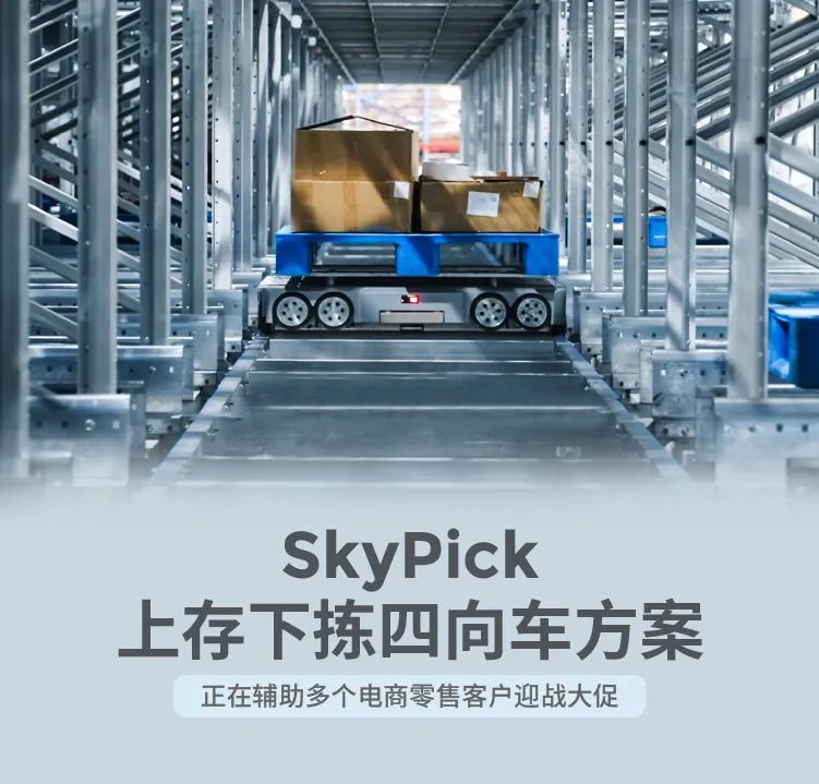 相比傳統(tǒng)四向車,該方案在同一庫區(qū)實現(xiàn)存揀結合,可實時自動補貨與揀貨,P800和四向車區(qū)域之間可實現(xiàn)實時的相互理貨調整。
